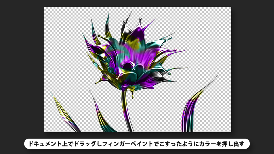 ドキュメント上でドラッグして、指でこするようにペイントしてカラーを押し出していきます。