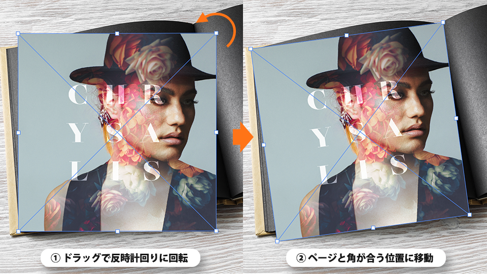 ページの向きに合うように、ドラッグで反時計回りに回転し、位置を合わせます。