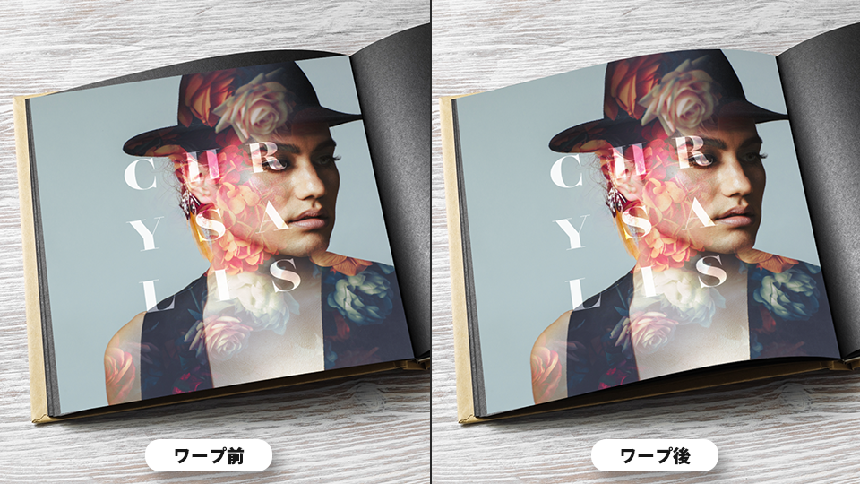 ワープを使用して、画像がページ湾曲に合うようにレイヤーを変形します。