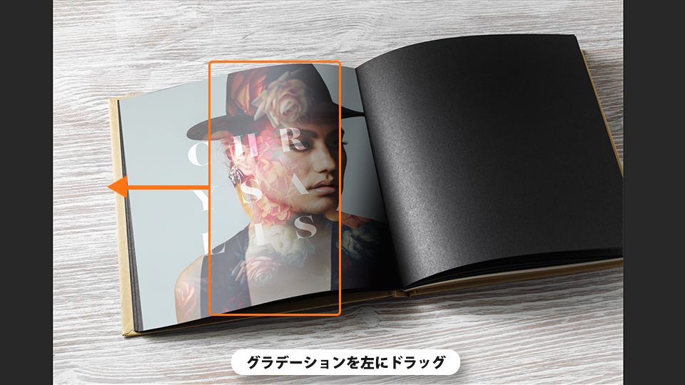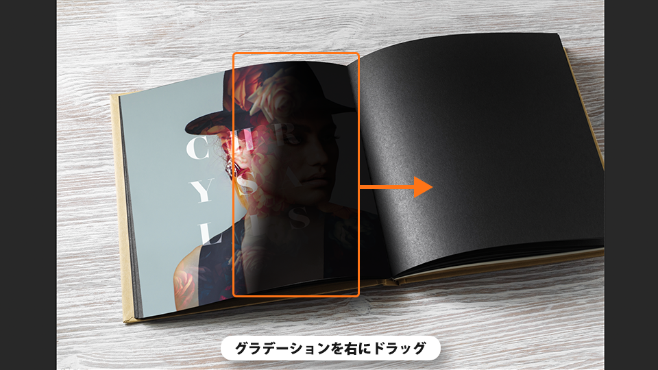 グラデーションを右にドラッグして本のノドの陰を作ります。