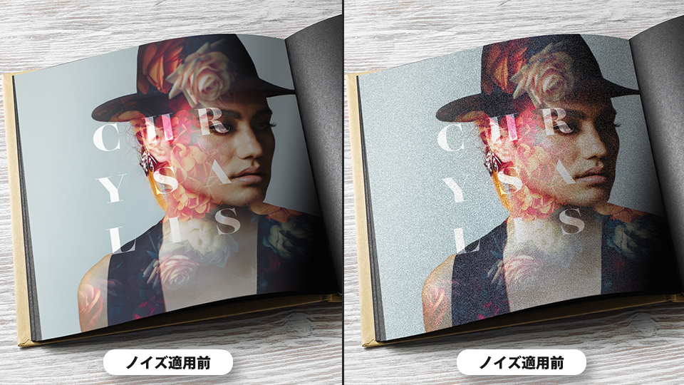 レイヤーにノイズを適用し、実際の紙のような質感に仕上げます。