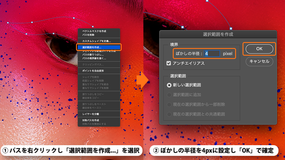 パスを右クリックし「選択範囲を作成...」を選択します。