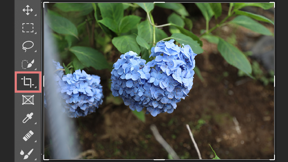 撮った写真の端を切ったりするトリミングは、まずツールバーにある切り抜きツールをクリックします。