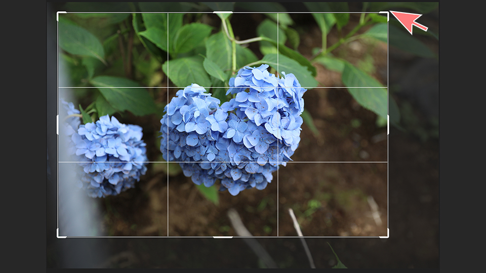 そうするとカンバスにある写真に枠が出てくるので、端をクリックしてドラッグすればトリミングできます。