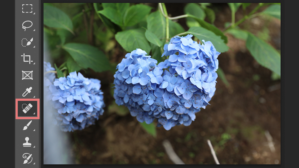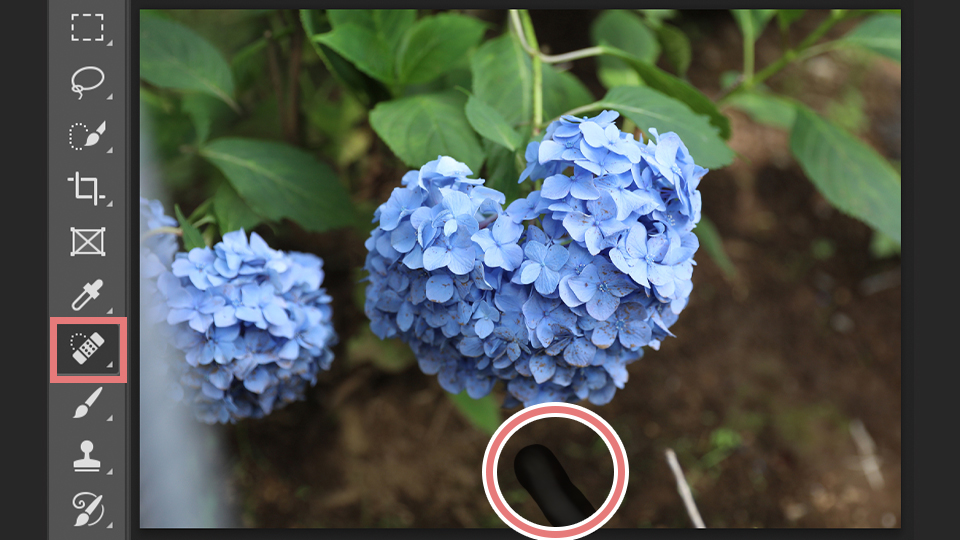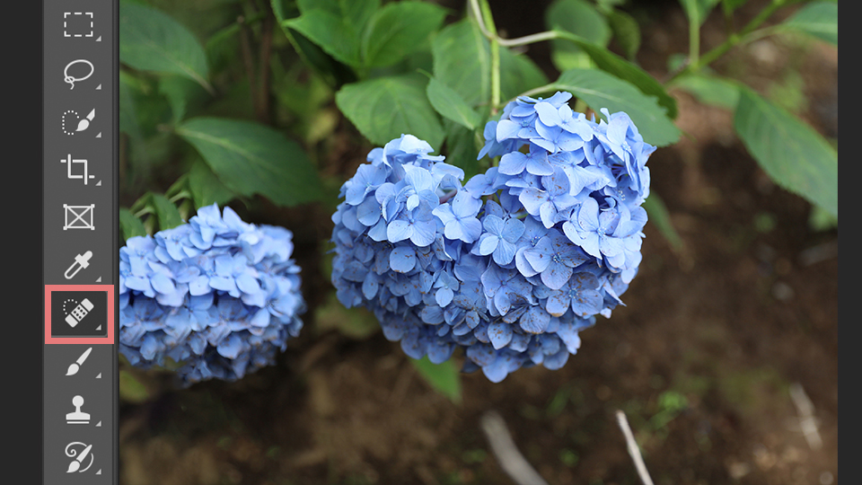 まず小さなものを消すには、ツールバーにあるスポット修復ブラシツールをクリックします。