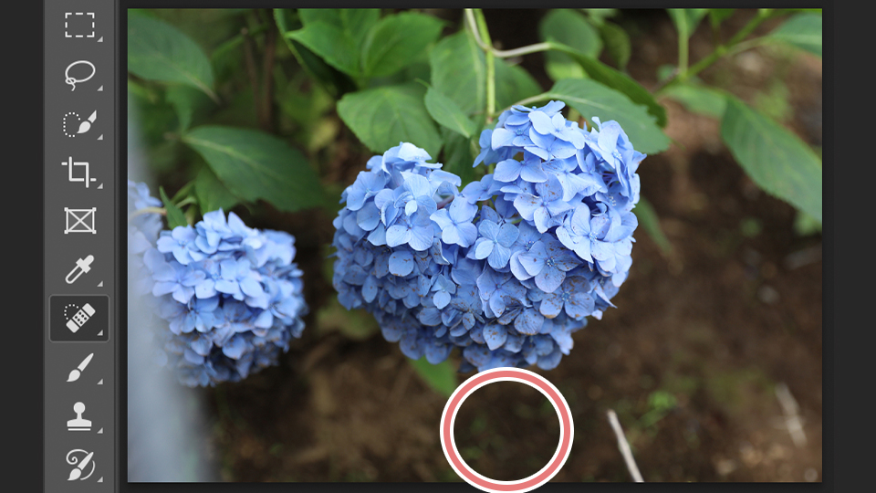 仕上げに小さなところを直すときのスポット修復ブラシツールを使って消していくと、きれいに消すことができます。