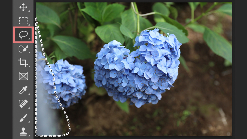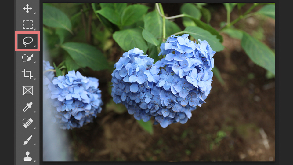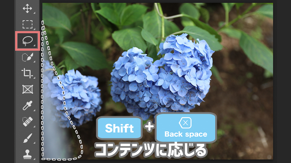 次に大きなものを消すには、ツールバーにある、なげなわツールをクリックします。