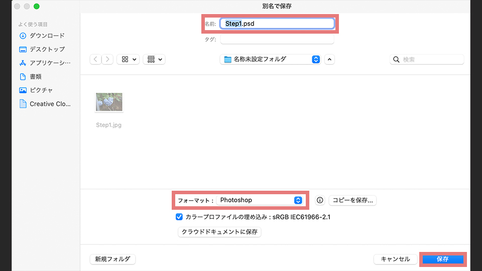 PSD形式で保存