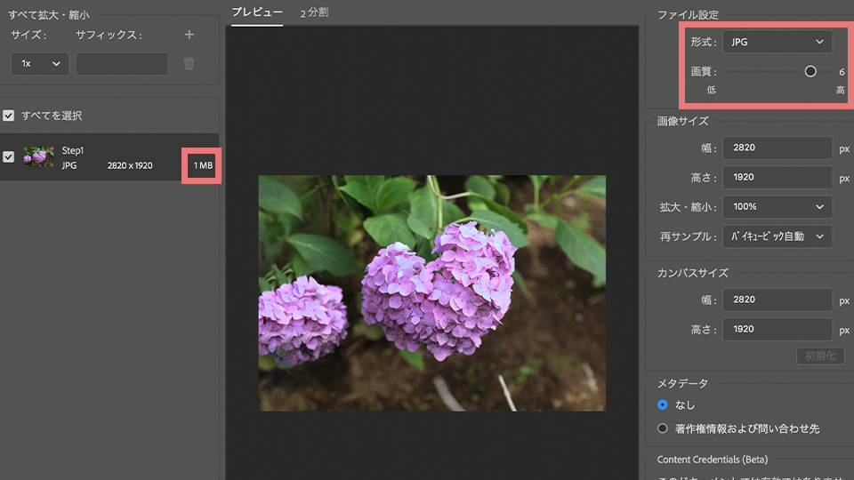 そして、形式をJPGにして画質の良さをここで決めることができます。画質をよくすればするほどファイルが重くなってしまうので、バランスを見ながら決めてみてください。
