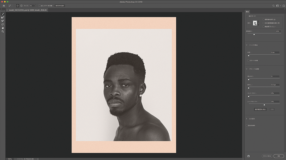 「選択とマスク」ワークスペースが開きます。
