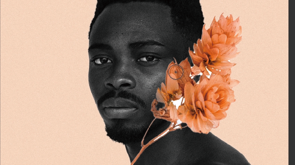 モデルと花の画像から不要な部分を削除します。