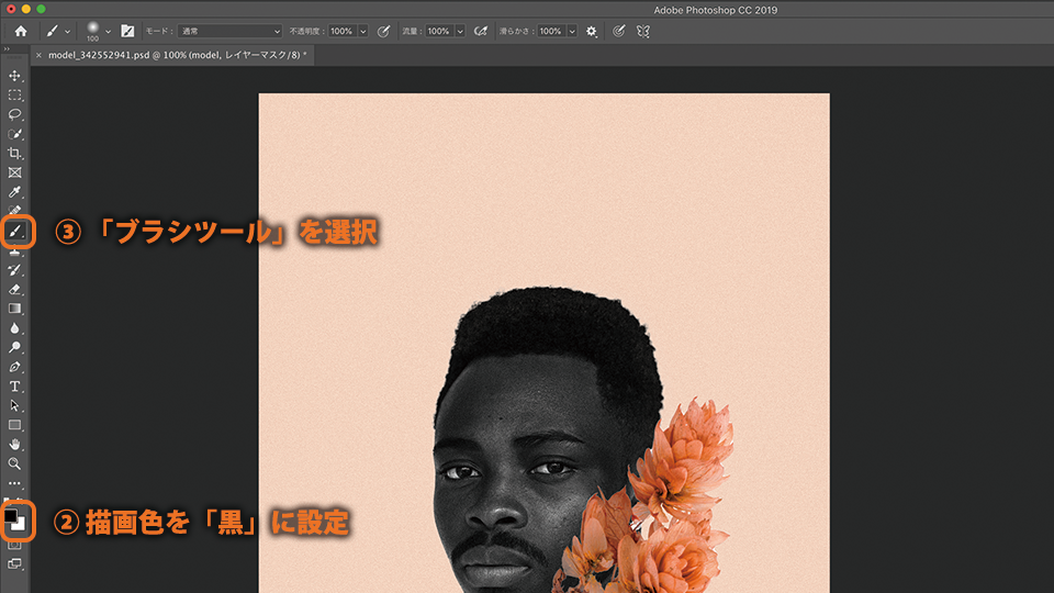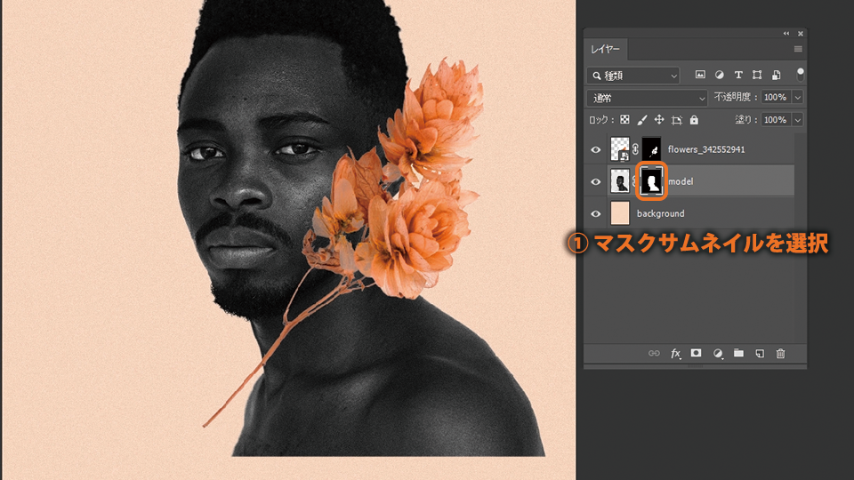レイヤーパネルでモデルのマスクサムネイルを選択します。