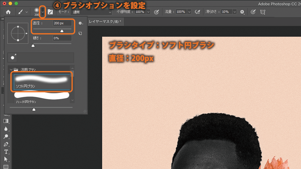 ブラシのタイプ:ソフト円ブラシ