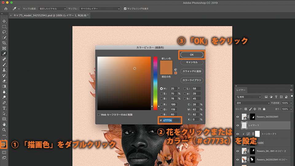 花をクリックしてカラー(#c7773c)を設定し、「OK」をクリックします。