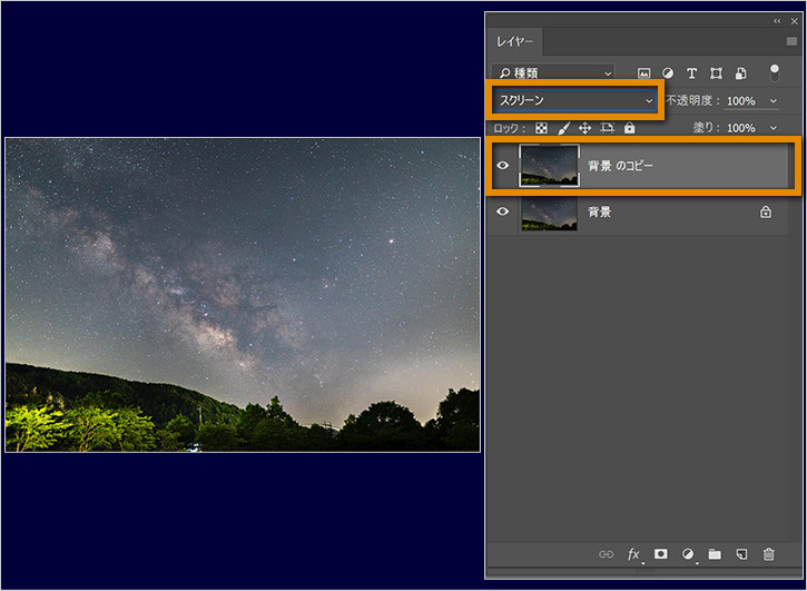 演算は結果を見ながら決めるが、ここでは「 スクリーン 」を使った。
