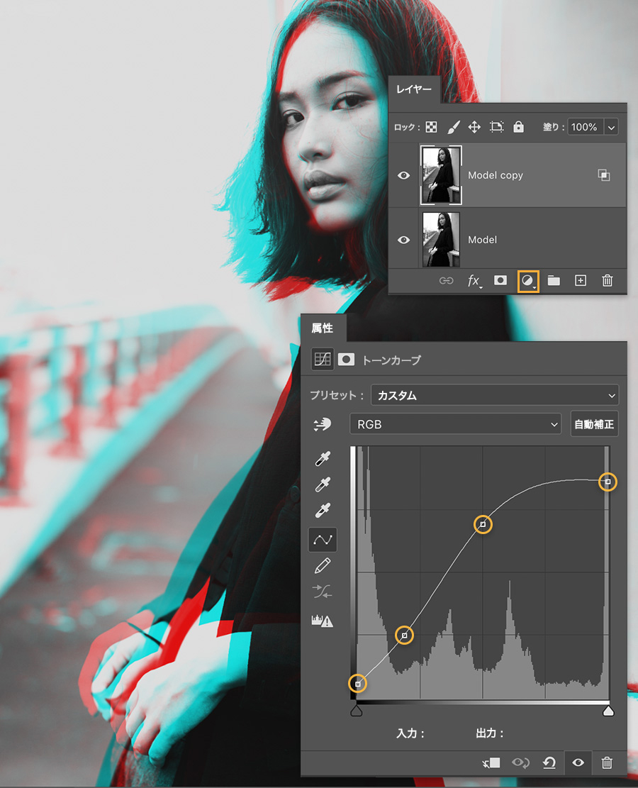 「Model」レイヤーを新規レイヤーアイコンにドラッグして複製します。