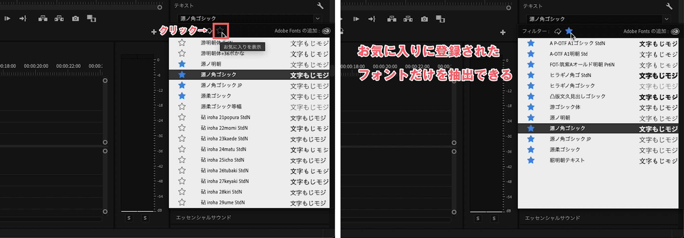 その上で再度BGMのオーディオを選択して、エッセンシャルサウンドを選択します。
