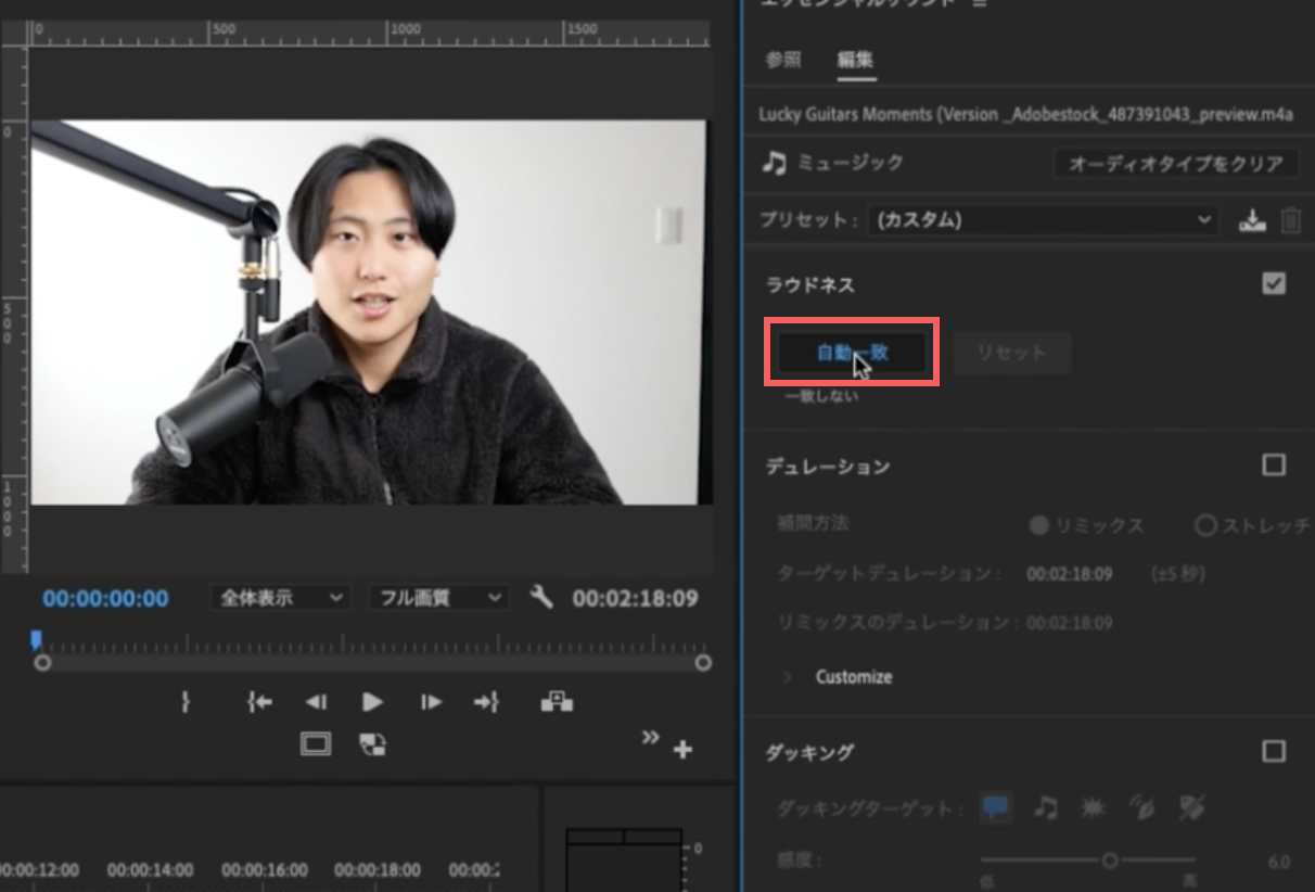 エッセンシャルサウンド、Adobe Stock、オートダッキング、オーディオリミックス