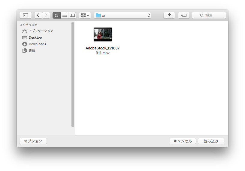 ファイルメニューから[読み込み...]を選択し、使用したい映像ファイルを指定し[読み込み]をクリックします。