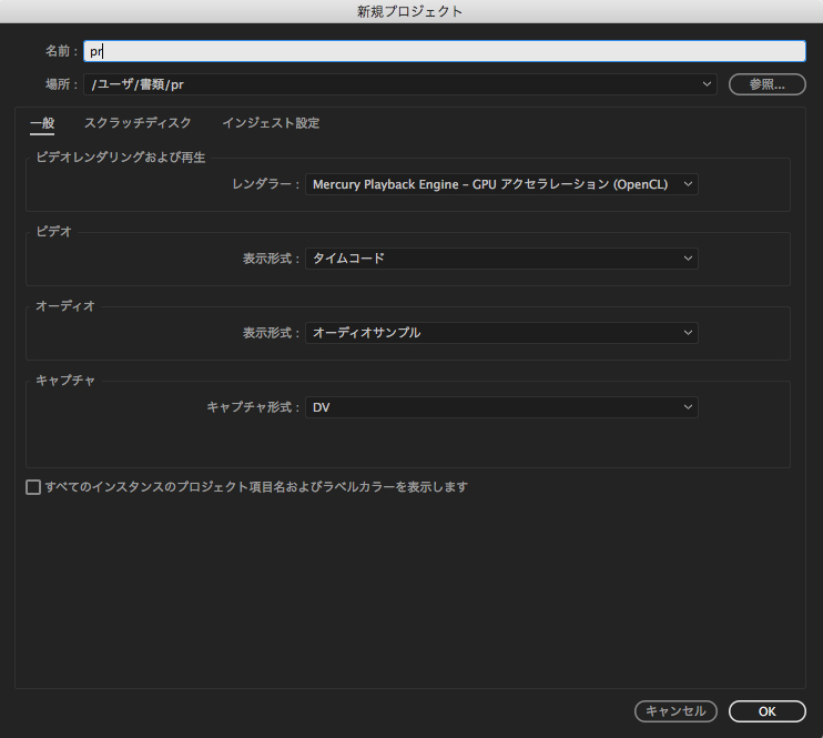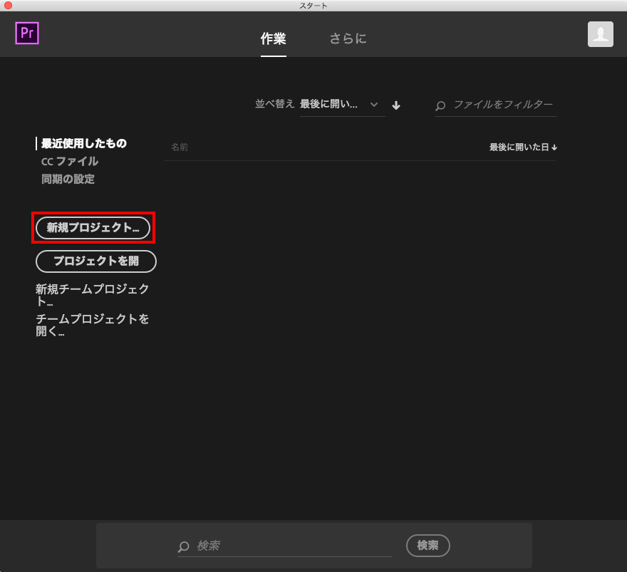 Premiere Proを起動し、スタート画面が表示されたら[新規プロジェクト...]をクリック、[新規プロジェクト]ダイアログで、プロジェクト名と保存場所を指定し新規プロジェクトを作成します。
