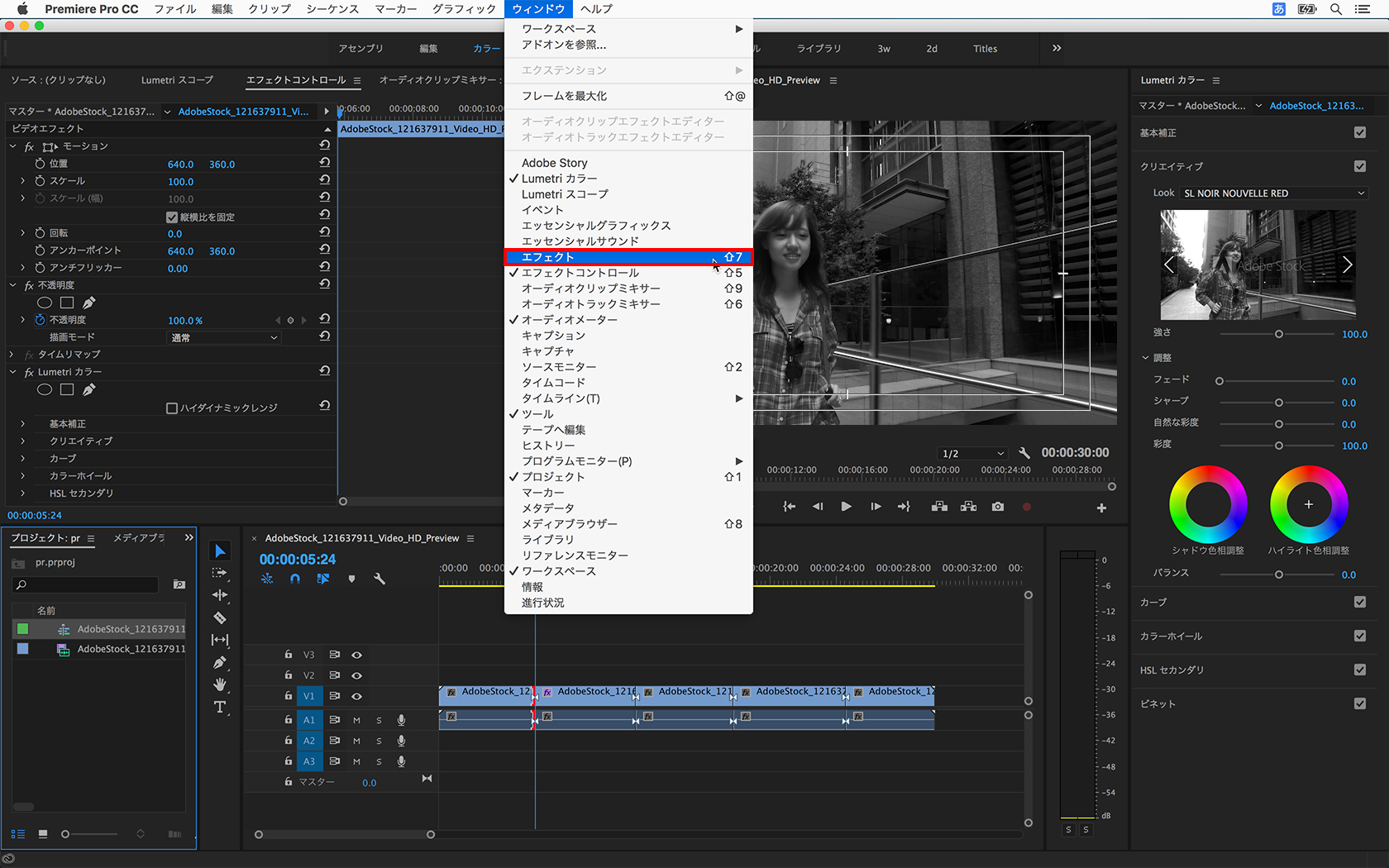 Premiere Proには、映像をフィルムで撮影した映画のような色合いに調整できるフィルムルックが用意されています。