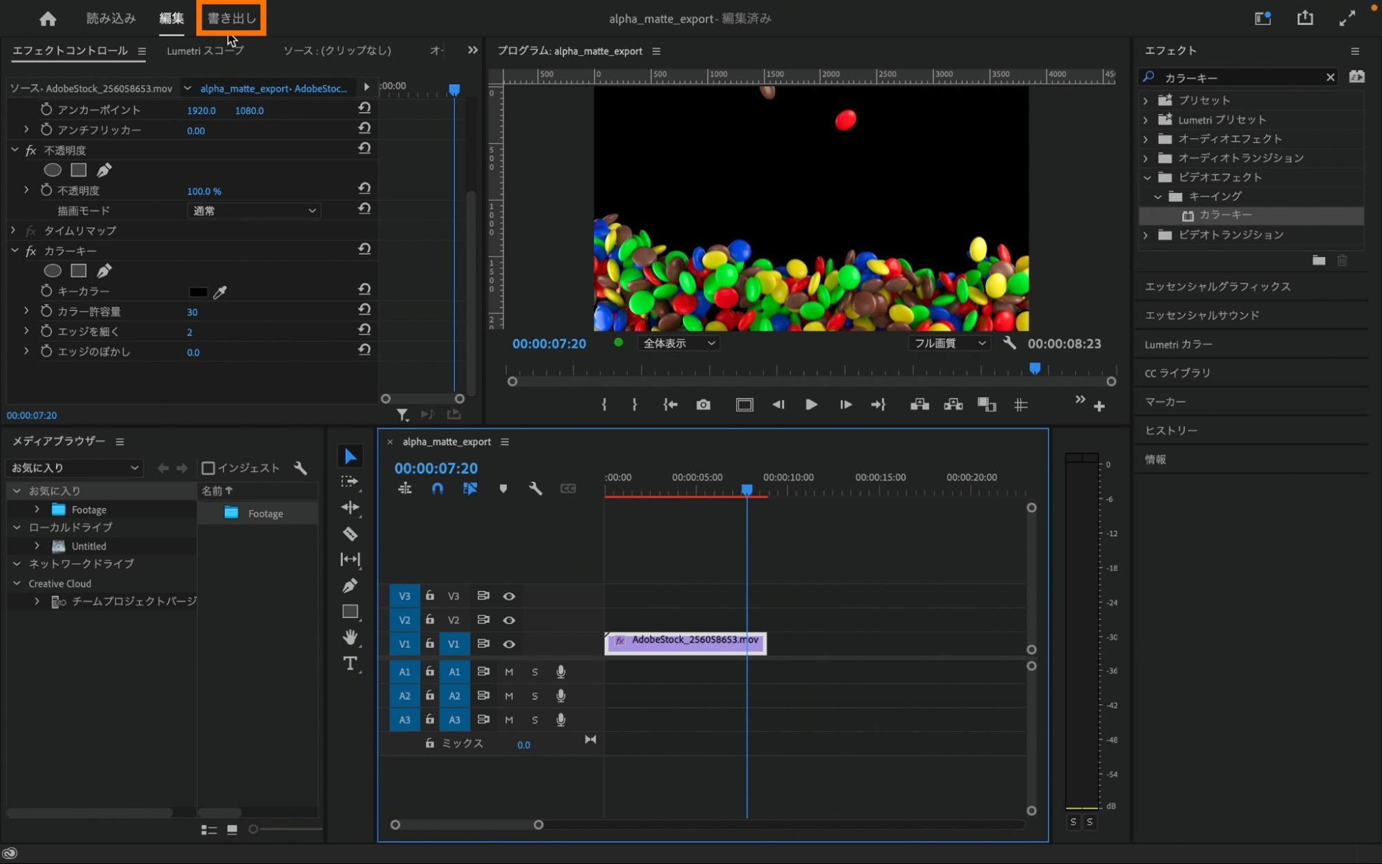 4. 透過した編集素材をアルファ付きの素材として書き出す