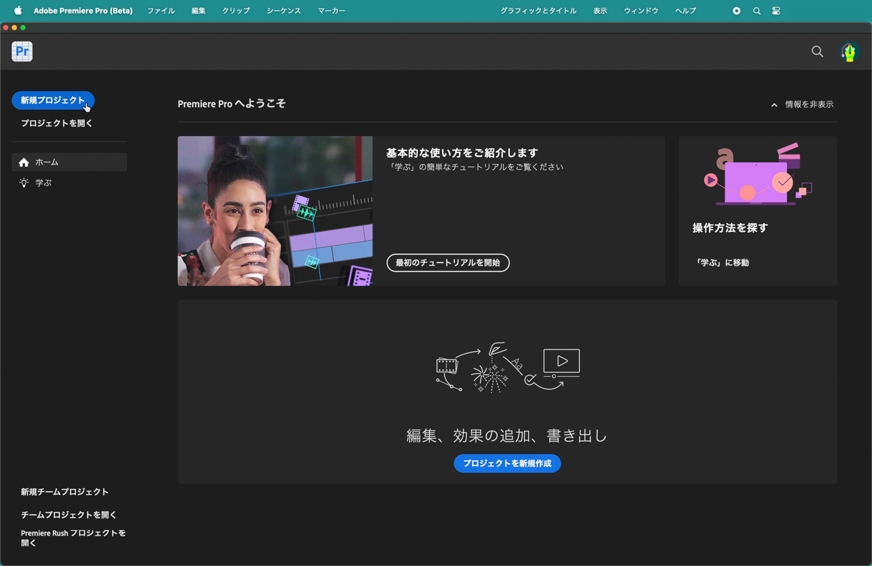 新規プロジェクトと新規シーケンスを作成する
