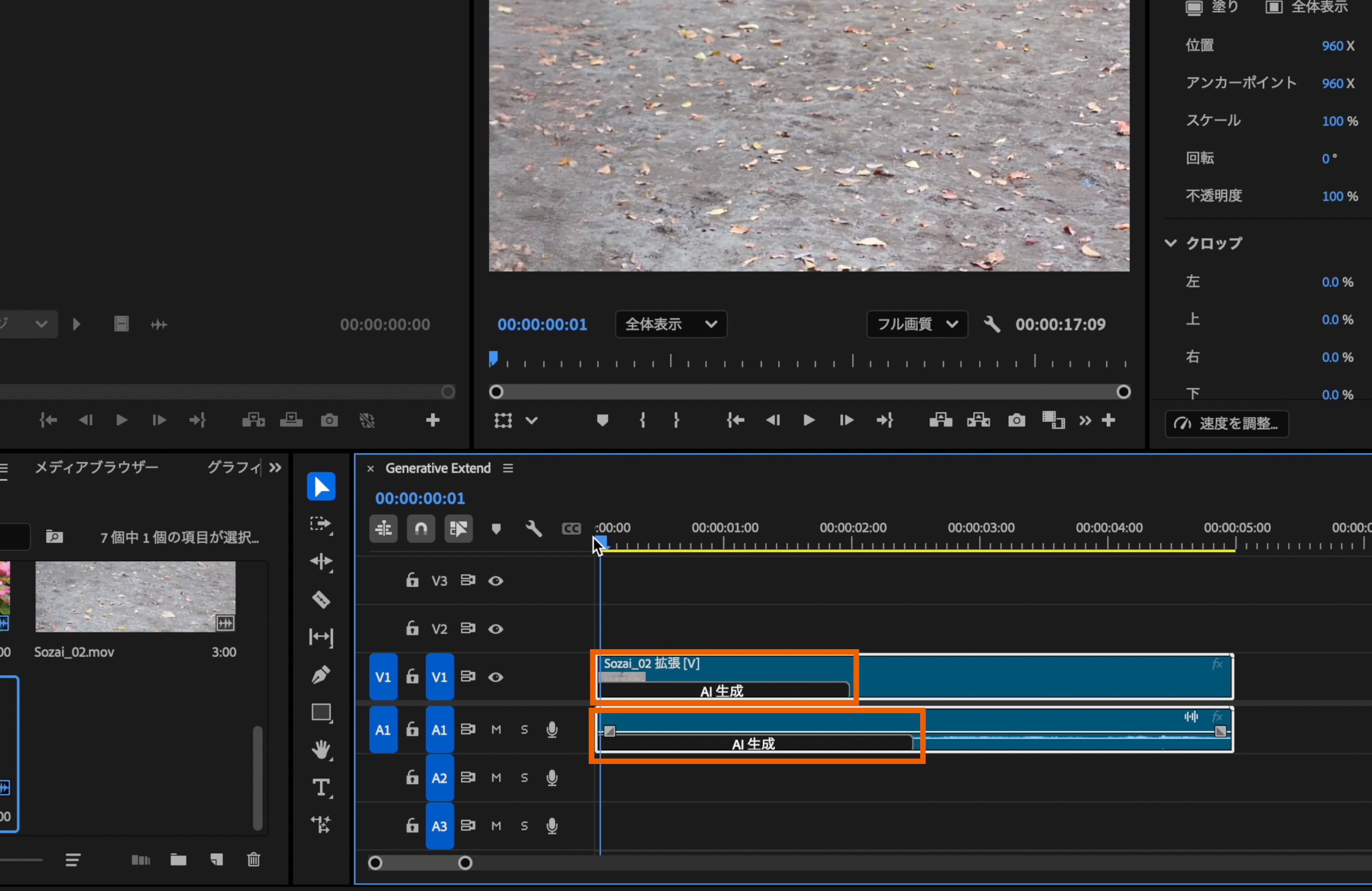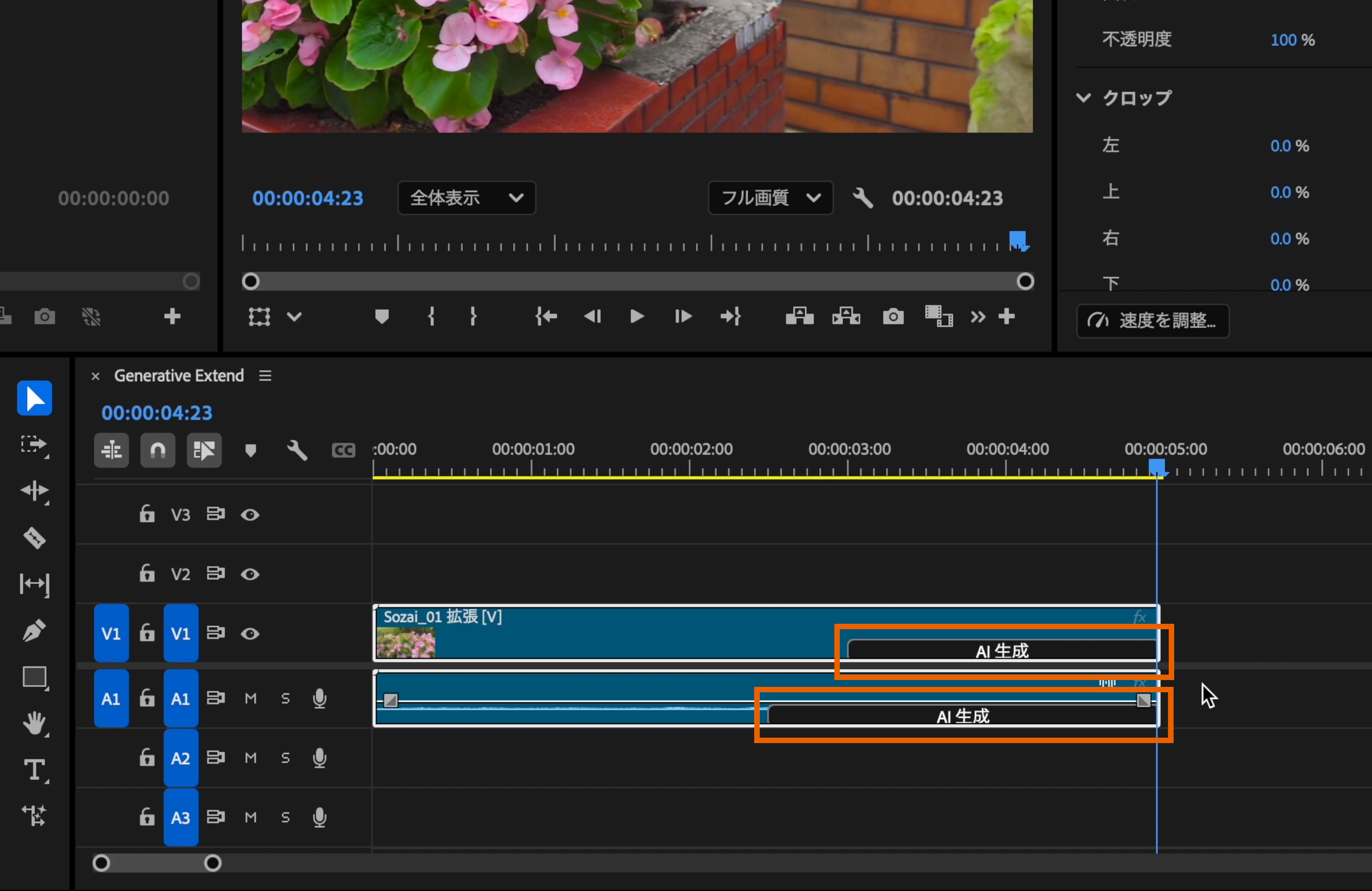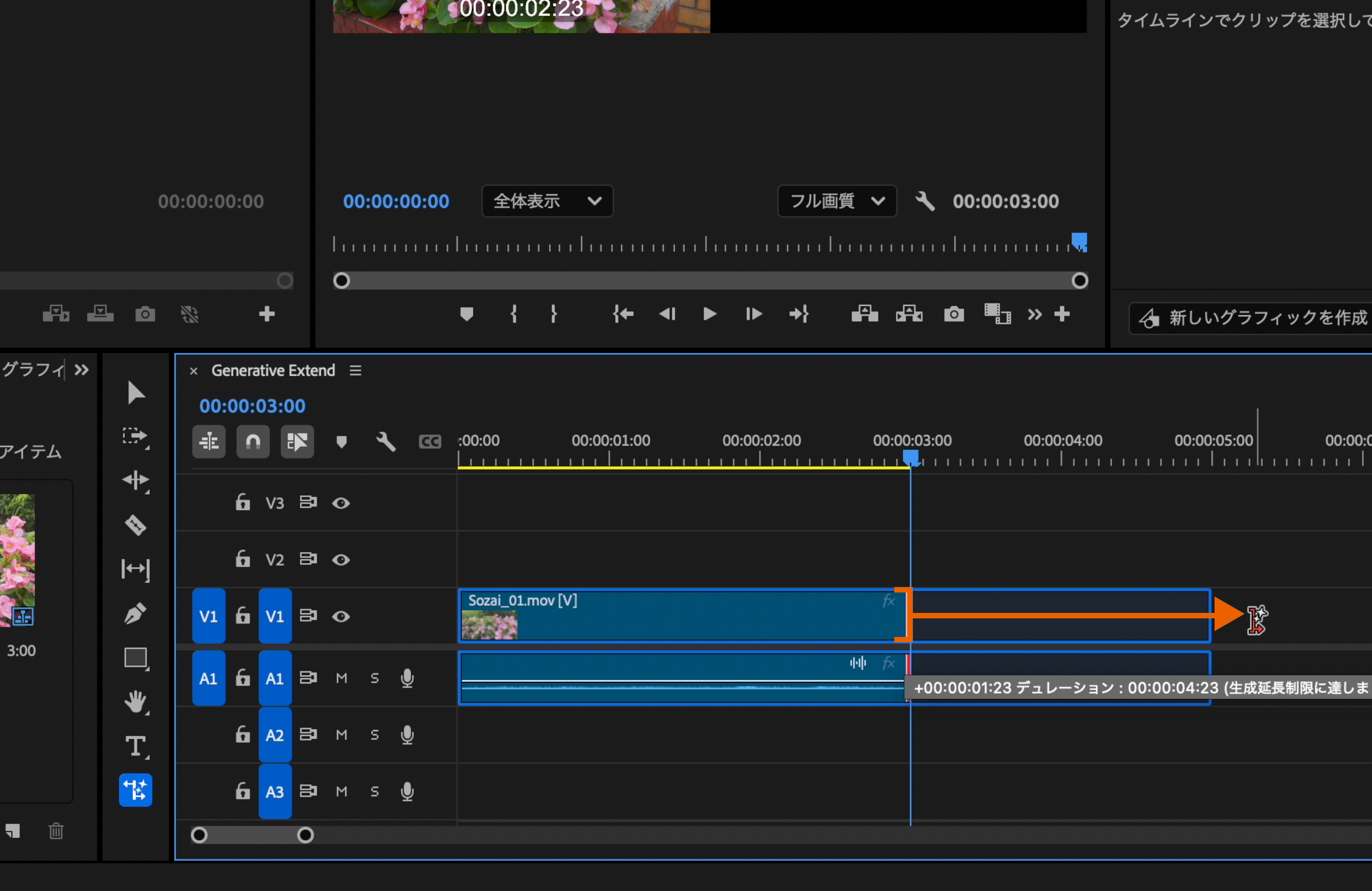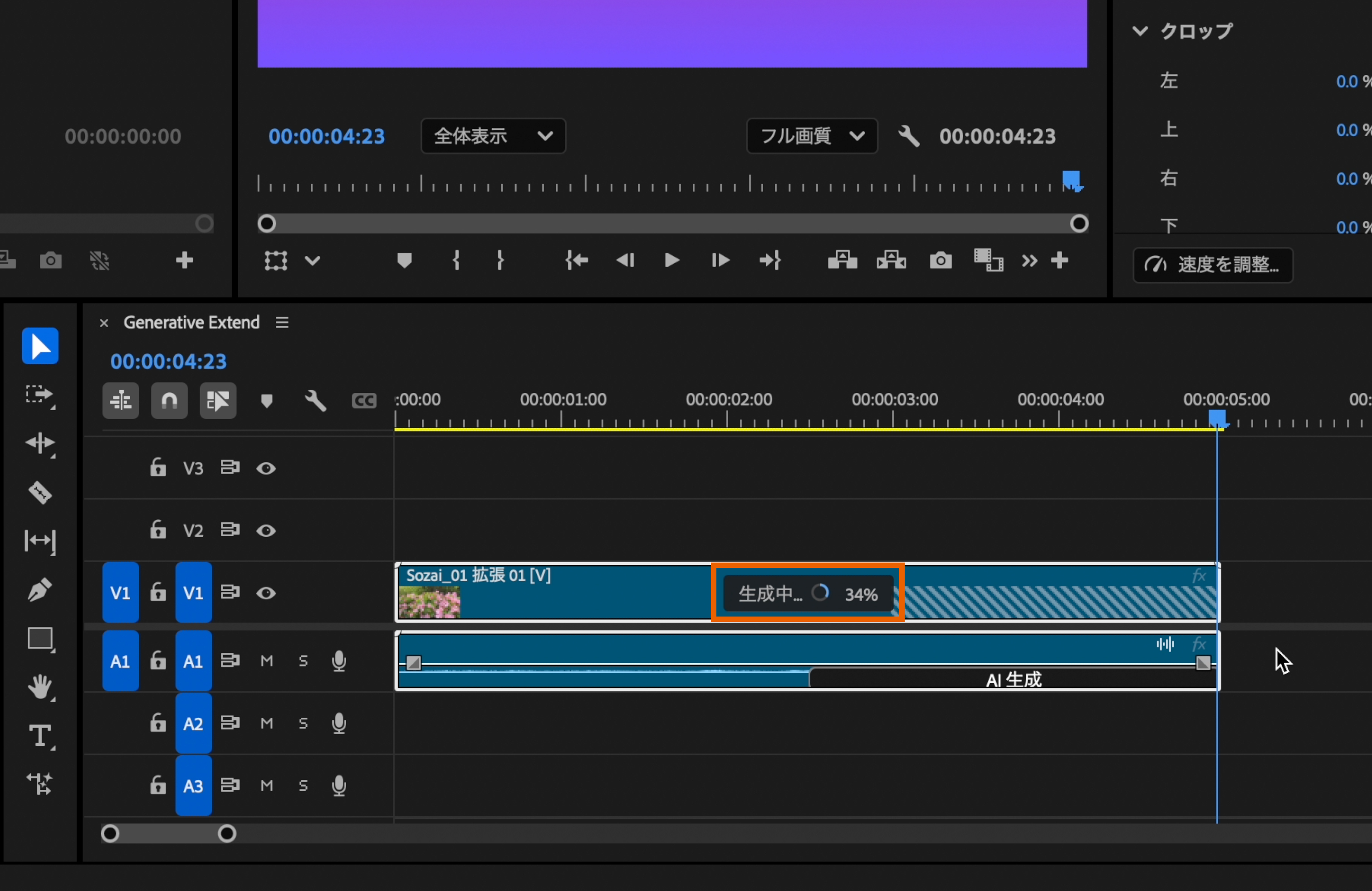 生成延長(ビデオクリップまたはオーディオクリップの追加)