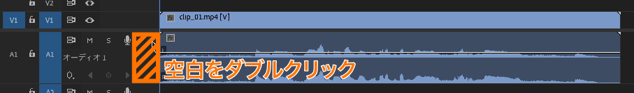 タイムラインの[A1]の空白の部分をダブルクリックしてオーディオの波形図を見やすく表示します。