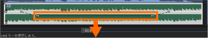<参考>BGMの音量を手動で調整する場合、キーフレーム内のバーを下へドラッグし、音量を調整することも可能です。