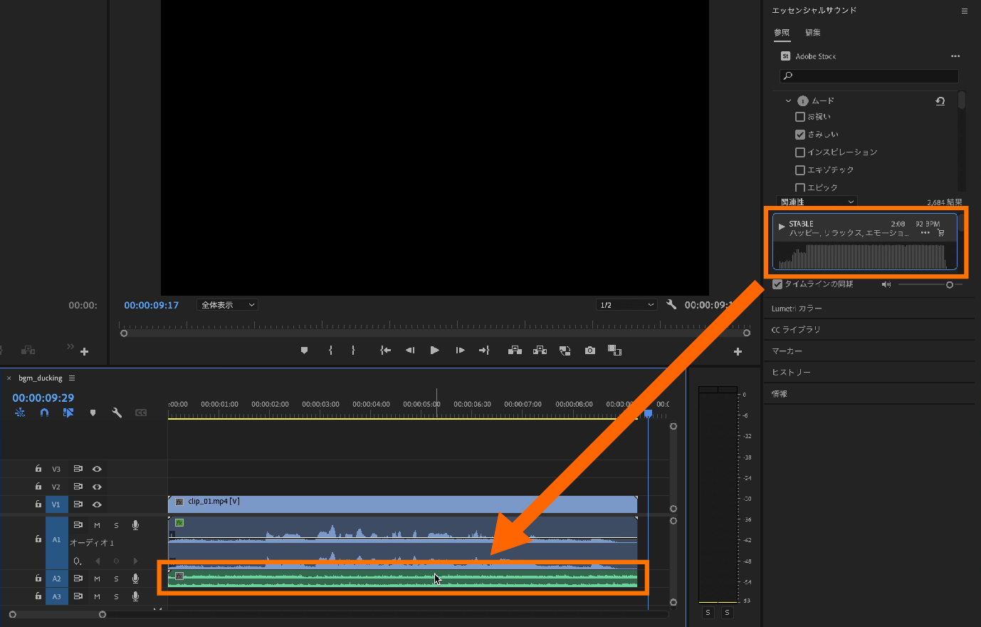 ※最終的ファイルとして書き出す際ににAdobe Stockのオーディオ素材を使用する場合はAdobe Stockの契約と楽曲の購入が必要となります。