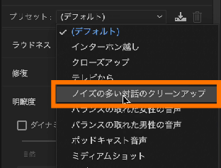 「会話」のプリセットから「ノイズの多い対話のクリーンアップ」を選択します。