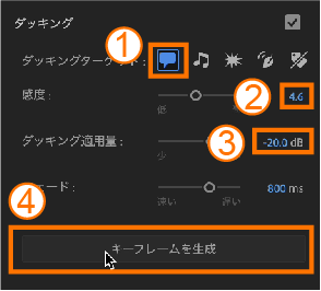 ①「ダッキングターゲット」に「会話クリップに対してダッキング」を選択。