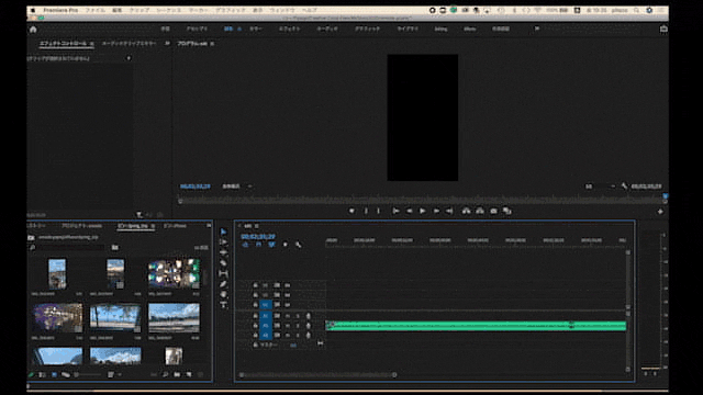次にPremiereに動画や写真などの素材を読み込んで、どこにどんなデータがあるか認識させます。
