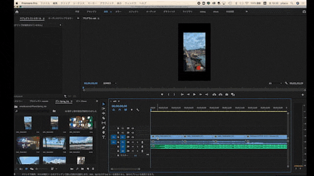 動画や画像などの素材を見せたい順番にシーケンスにドラッグ&ドロップします。