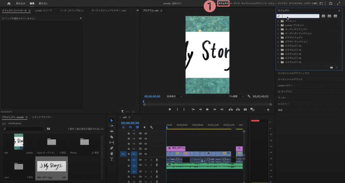 次にPremiere Proでの処理です。