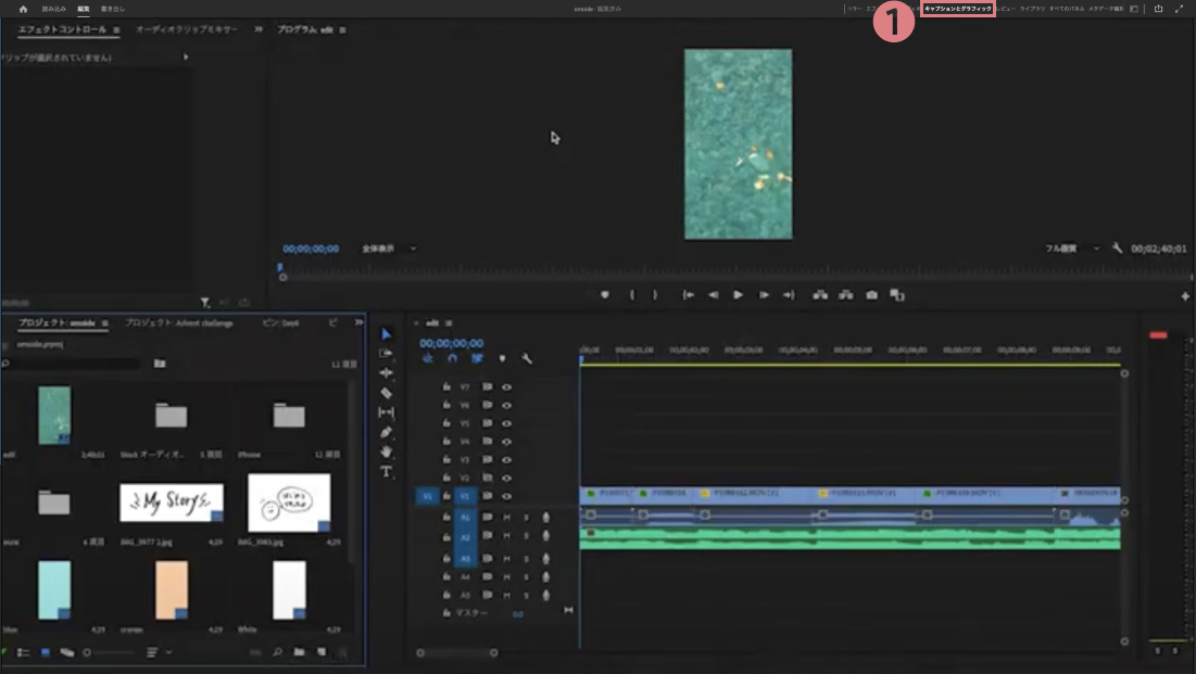 まずは画面上にある「キャプションとグラフィック」を選択して、文字などの入力に最適な画面に切り替えます。