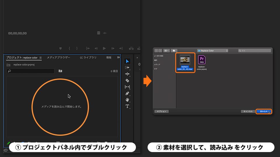 「プロジェクト」パネルをダブルクリックして、「読み込み」ダイアログボックスを開きます。
