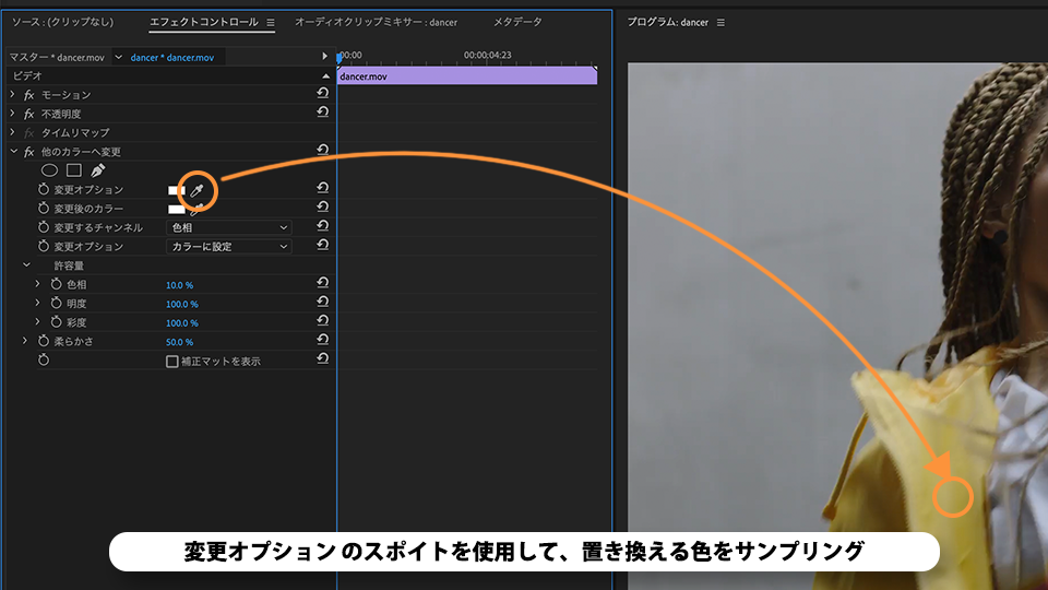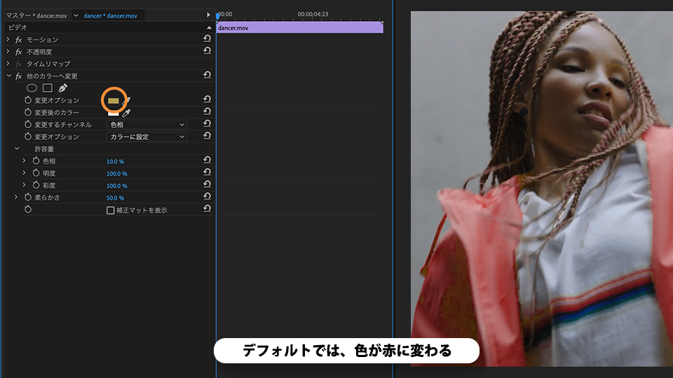 Adobe Premiere Proの「他のカラーへ変更」エフェクトを使用すると、ターゲットとなるカラーを選び、映像内の特定部分のみのカラーを変化させることができます。