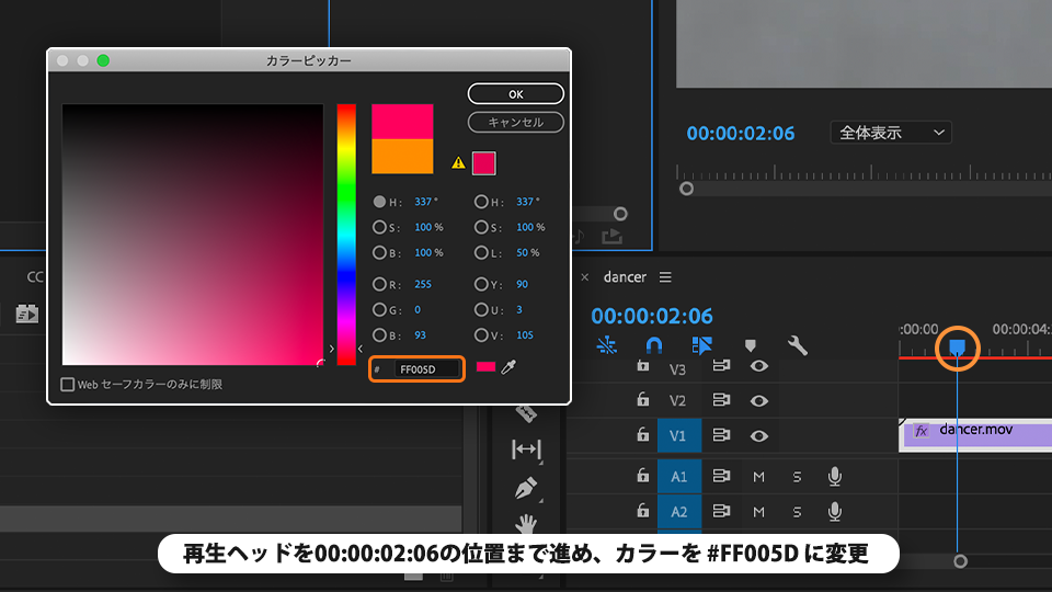 再生ヘッドを00:00:02:06の位置まで進めます。