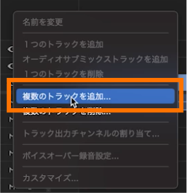 タイムライン左枠の空白になっている箇所を右クリックし「複数のトラックを追加...」を選択。