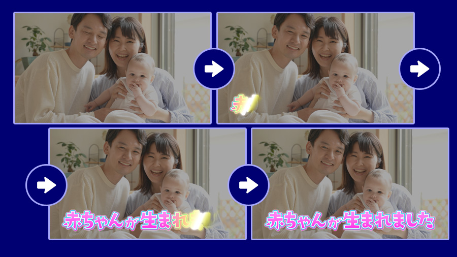 画面の外からテロップが勢いよく入ってくる スライドインと呼ばれる動きです。