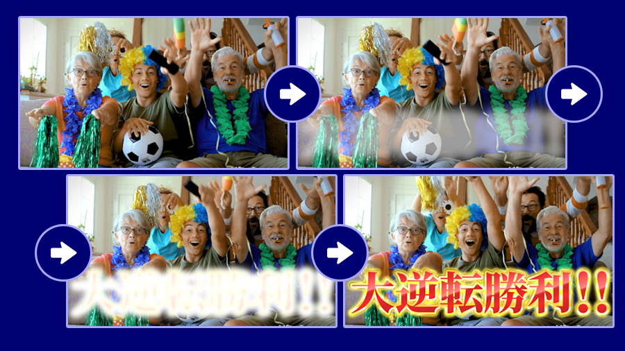 テロップを伸ばしたり ぼかしの量を調整したりして表情を付けることもできます。