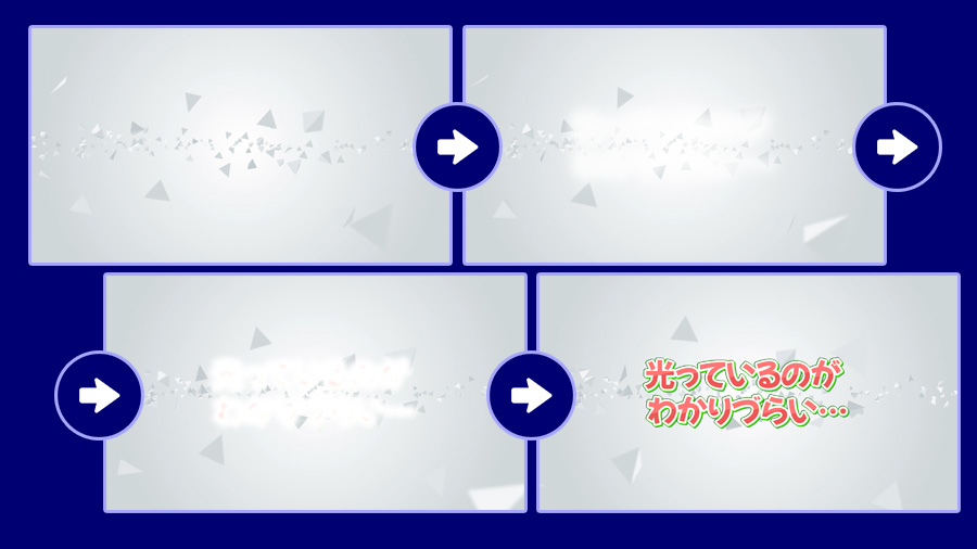これも超王道エフェクトで テロップ全体がピカッと光りながら出現する グローインと呼ばれるエフェクトです。