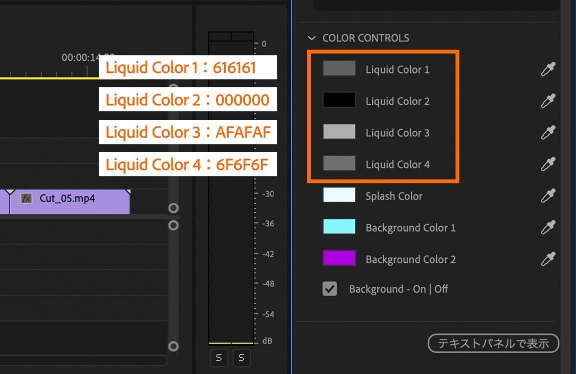 「Liquid Color」の1〜4までを同様の手順で色指定していきます。