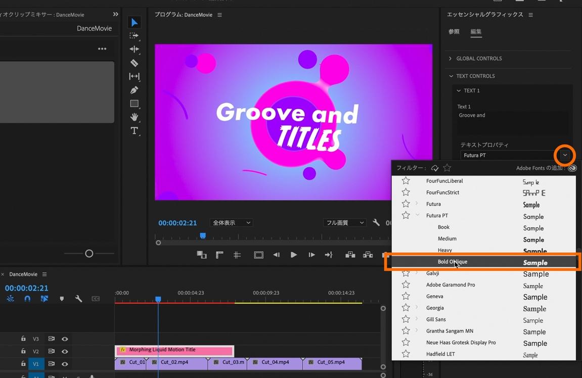 ※今回は「Morphing Liquid Motion Title」を適用しましたが、Adobe Stockには多くの素材がありますのでお好きなテンプレートを選んでお使いください。