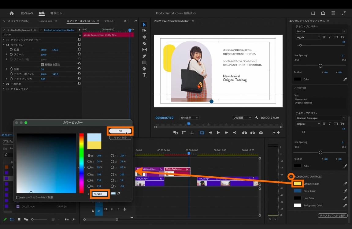 さらに異なるモーショングラフィックステンプレートを活用して、商品説明の次のシーンを追加します。