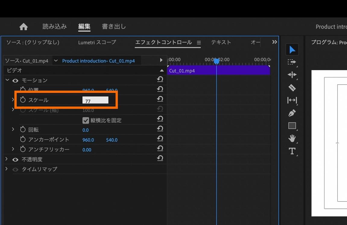 今回は「スケール」の数値を77.0に変更。