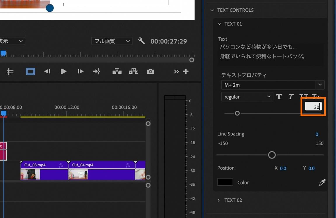 テキストのサイズの数値を30に変更。