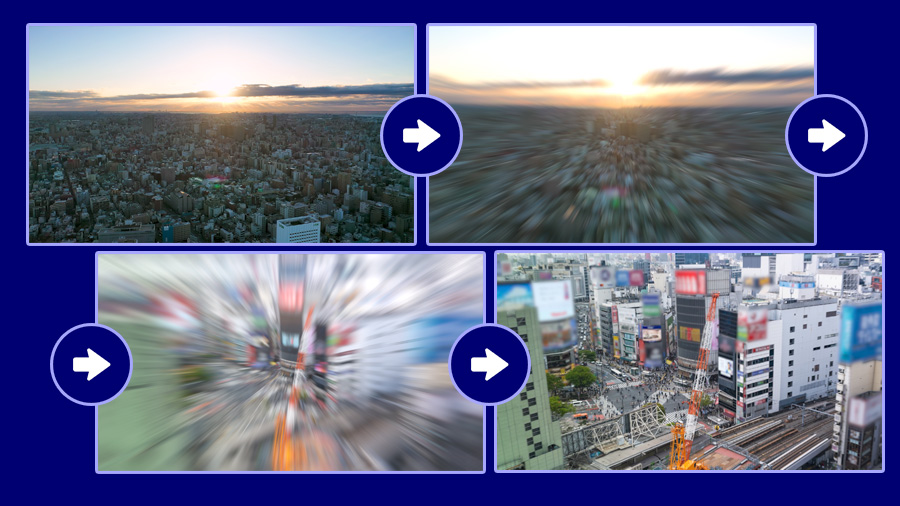 3つ目は「Zoom Blur」 ダイナミックにズームしながら場面転換させるエフェクトです。